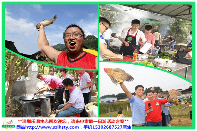 5、田园野炊:园区提供走地鸡、水库鱼、水鸭、猪肉、鸡蛋及各类新鲜蔬菜,统筹分配,保证大家吃饱、吃好。小伙伴们动手体验田间抓鸡、湖里捉鱼、捡柴生火,尽享农家乐田园生活。大家一起努力,做出农家美食!